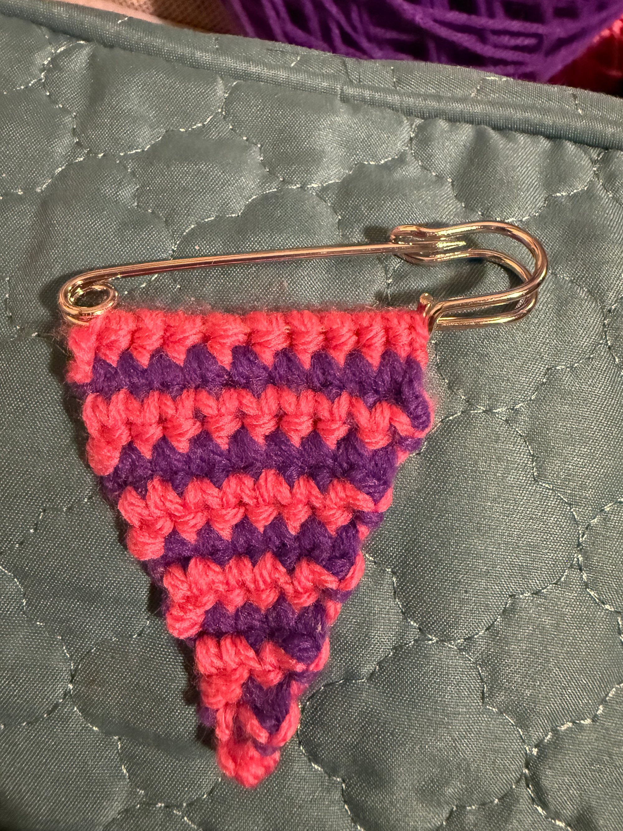 Crochet triangle safety pin brooch # 1